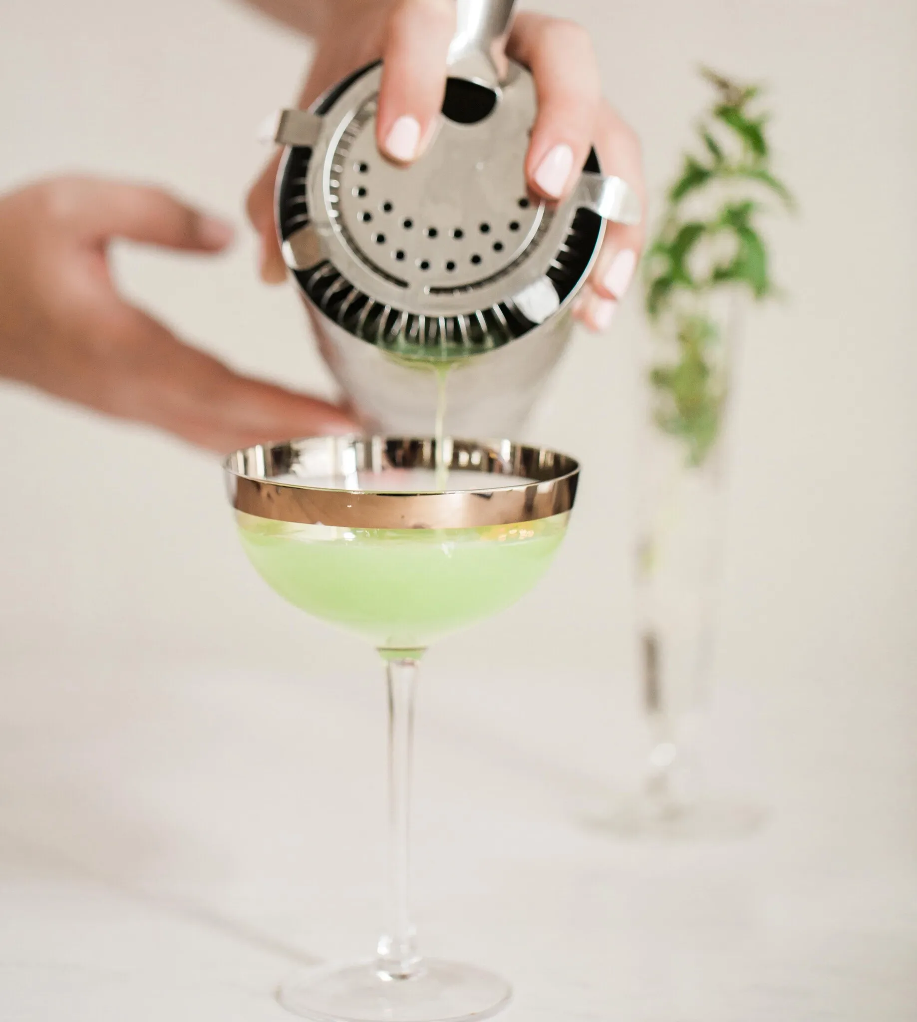 - Strain into a chilled coupe glass and garnish.